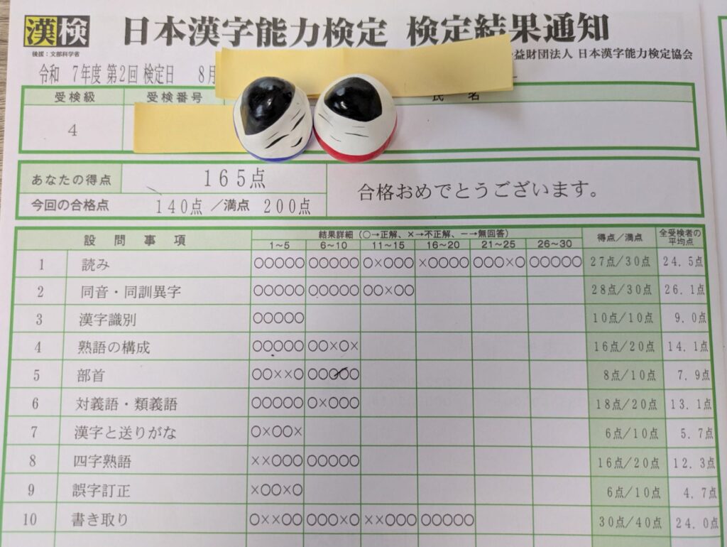 中1長男4級合格~中学在学程度~