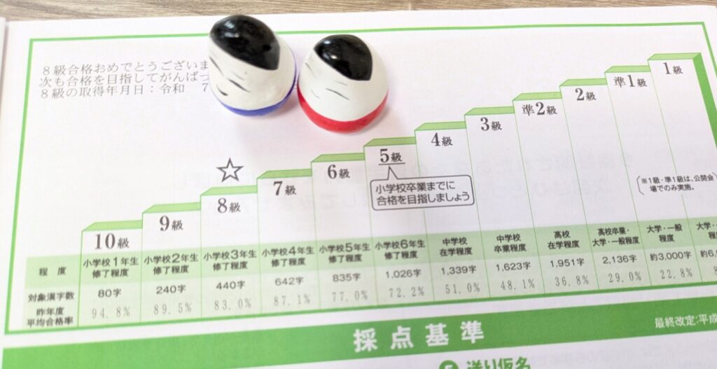 小4次男8級合格~小3終了程度~