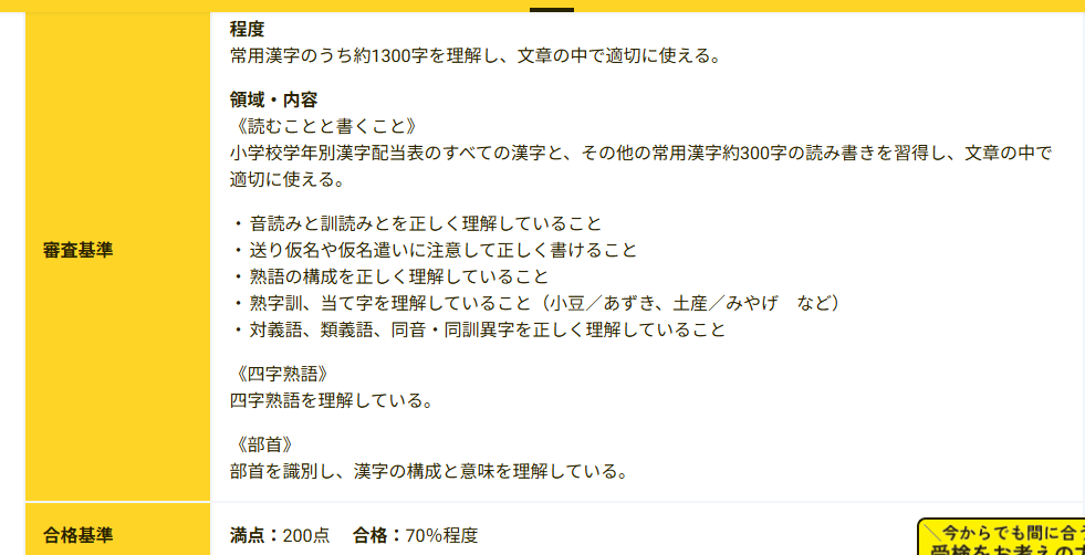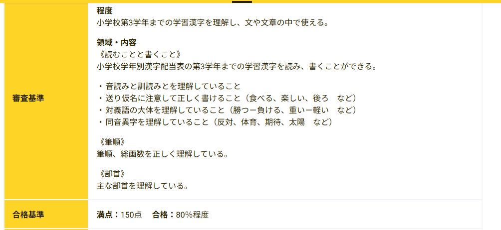 4級の概要→公益財団法人 日本漢字能力検定協会より抜粋