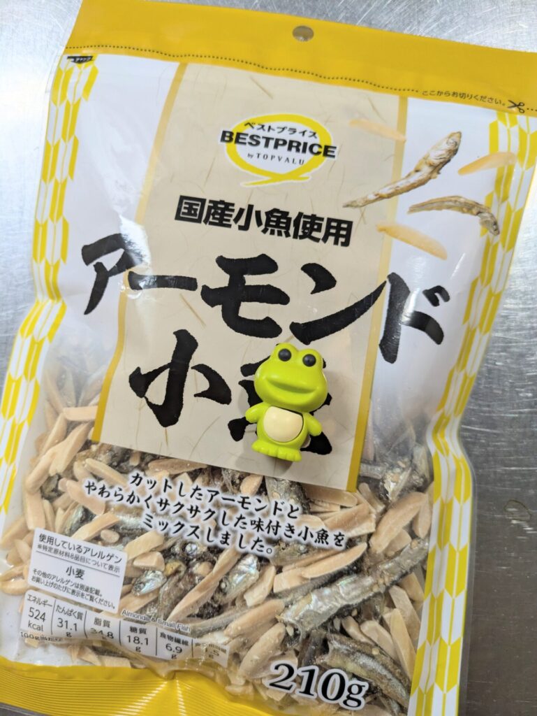 少しでも諸々を省けるようなものをと、色々検索しつつたどり着いたアーモンド小ガエル(小魚)使用の田作り。