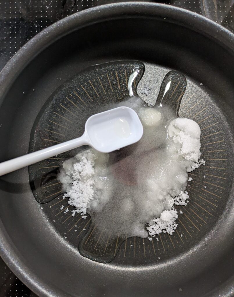 冷ますことで、カエルがカラメル状にカワルよ。