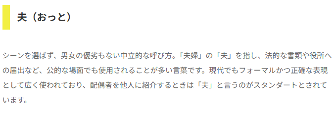 ※マイナビウエディング夫・旦那、妻・嫁…… 配偶者の呼び方はどれが正解?より抜粋