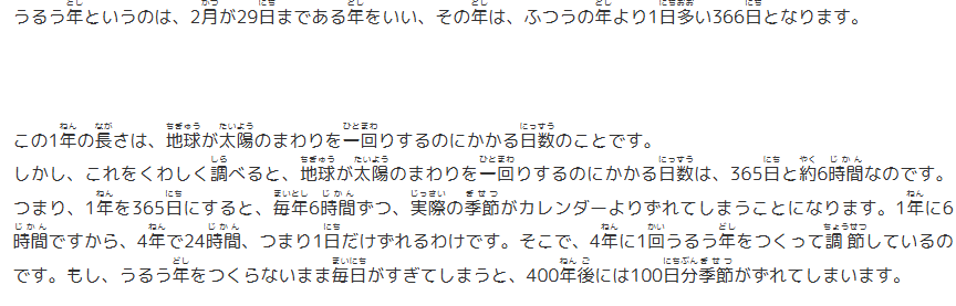 どうしてうるう年は4年に一度なの、どうしてあるの学研キッズネットより抜粋